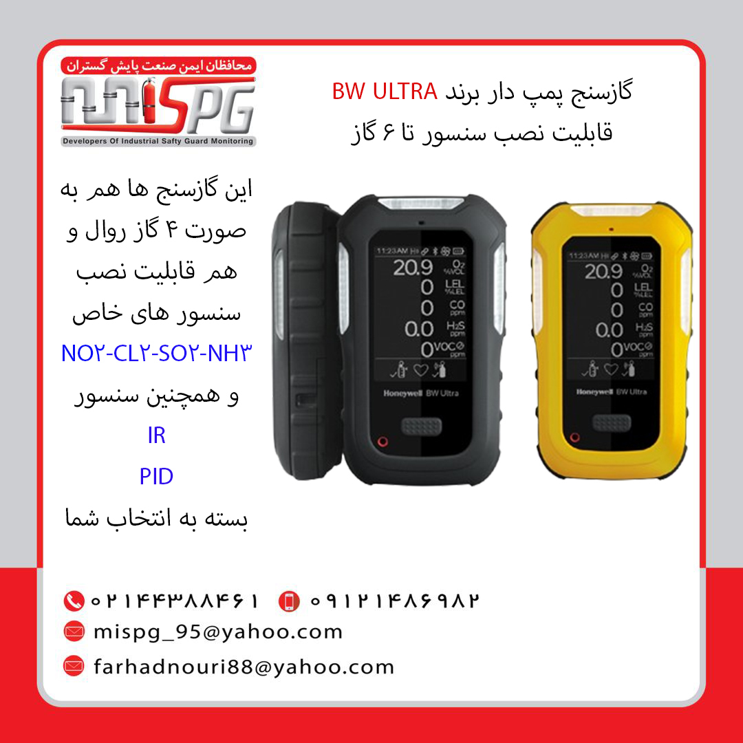 • گاز سنج های مولتی سنج یکی از بهترین تجهیزات ایمنی و آتش نشانی می باشند که توانایی سنجش انواع گاز ها را به طور همزمان دارند. گاز سنج هانیول مدل bw ultra یکی از گاز سنج های چند کاره با کیفیت در بازار است که قابلیت تشخیص 5 گاز سمی را به صورت همزمان دارد. این گاز سنج آمریکایی، دارای صفحه نمایش بسیار بزرگ و کاربری بسیار آسانی می باشد و مجهز به استاندارد مجهز به IP66/68 نیز است. فناوری TouchConnect این دستگاه گاز سنج برای مدیریت سریع ابزارها، طول عمر 5 ساله سنسور، وزن بسیار سبک، دقت تشخیص بسیار بالا، جنس بدنه مقاوم در برابر ضربه و کاربری بسیار آسان از ویژگی های این گاز سنج مولتی گاز می باشد. گازسنج bw می تواند به صورت همزمان 5 گاز را برای نظارت در فضاهای محدود تشخیص دهد و اندازه گیری کند.